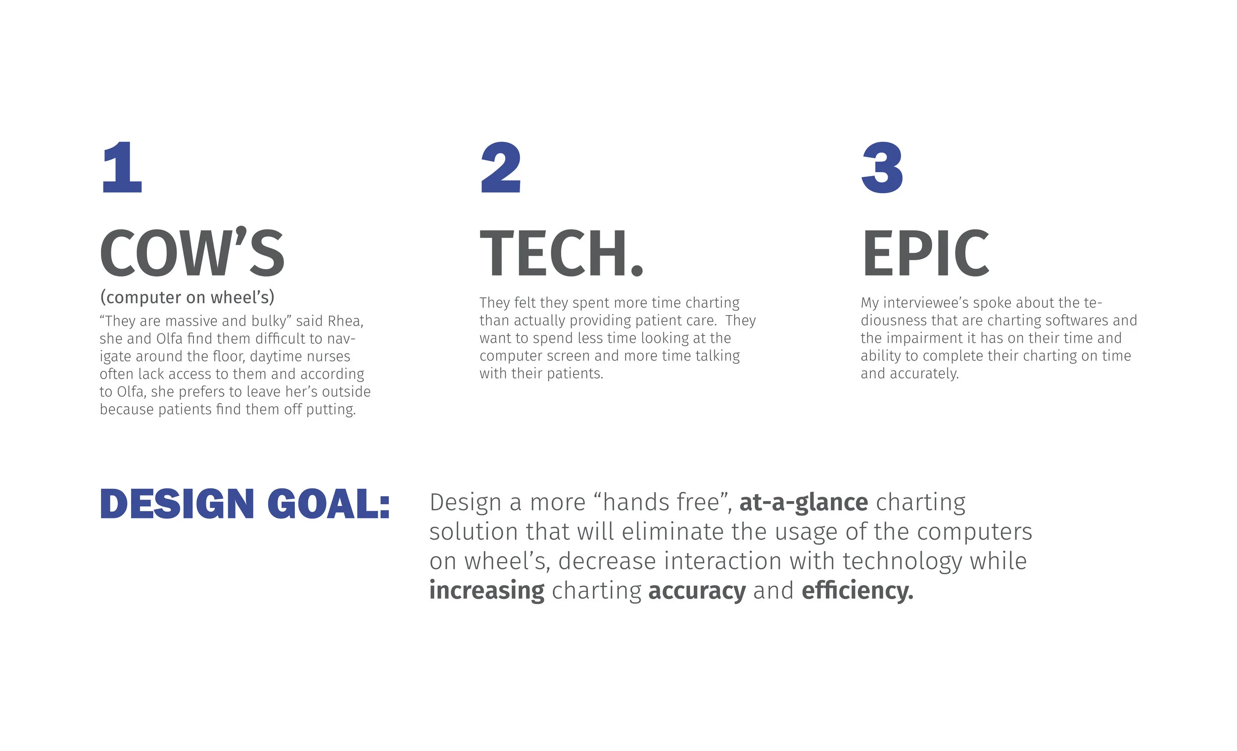 Our group took all of our conducted research and began idenfitying problem areas, I personally chose to focus on nursing charting.