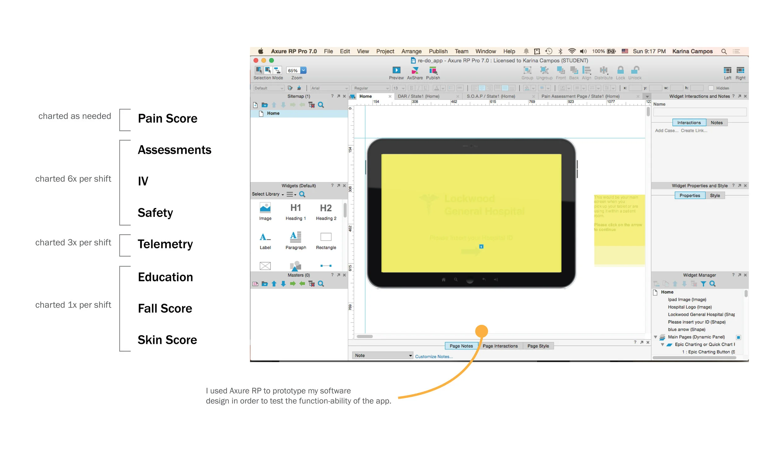 Before even prototyping a software, I had to determine what nurses chart exactly. After conducting a follow up interview with Rhea, she identified the main aspects that nurses chart.