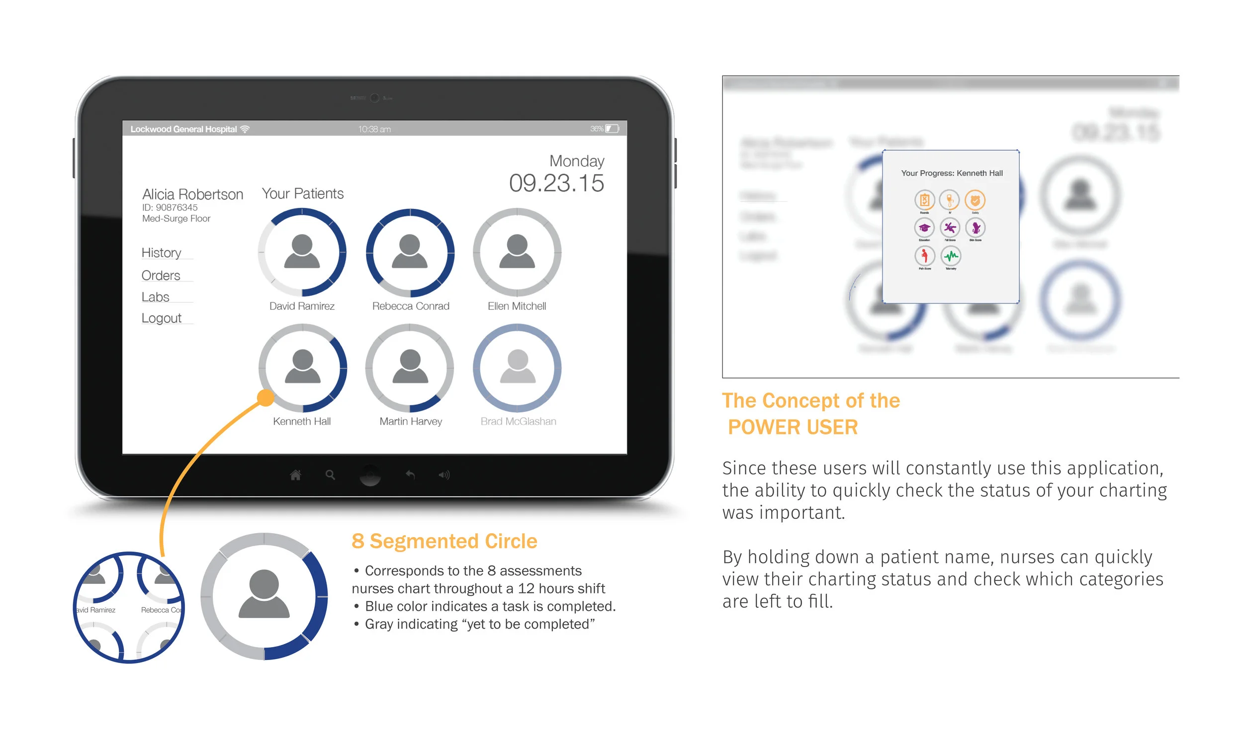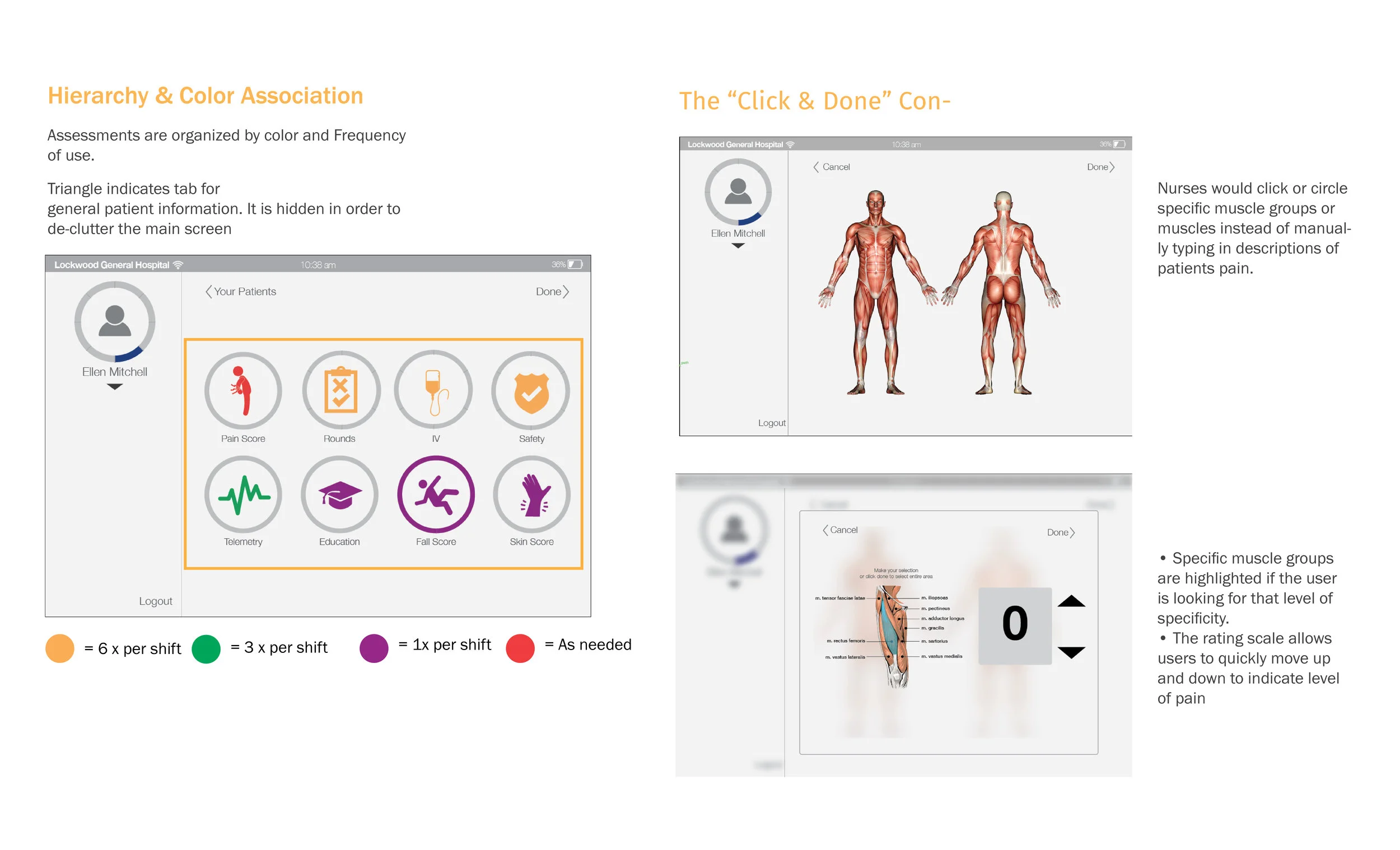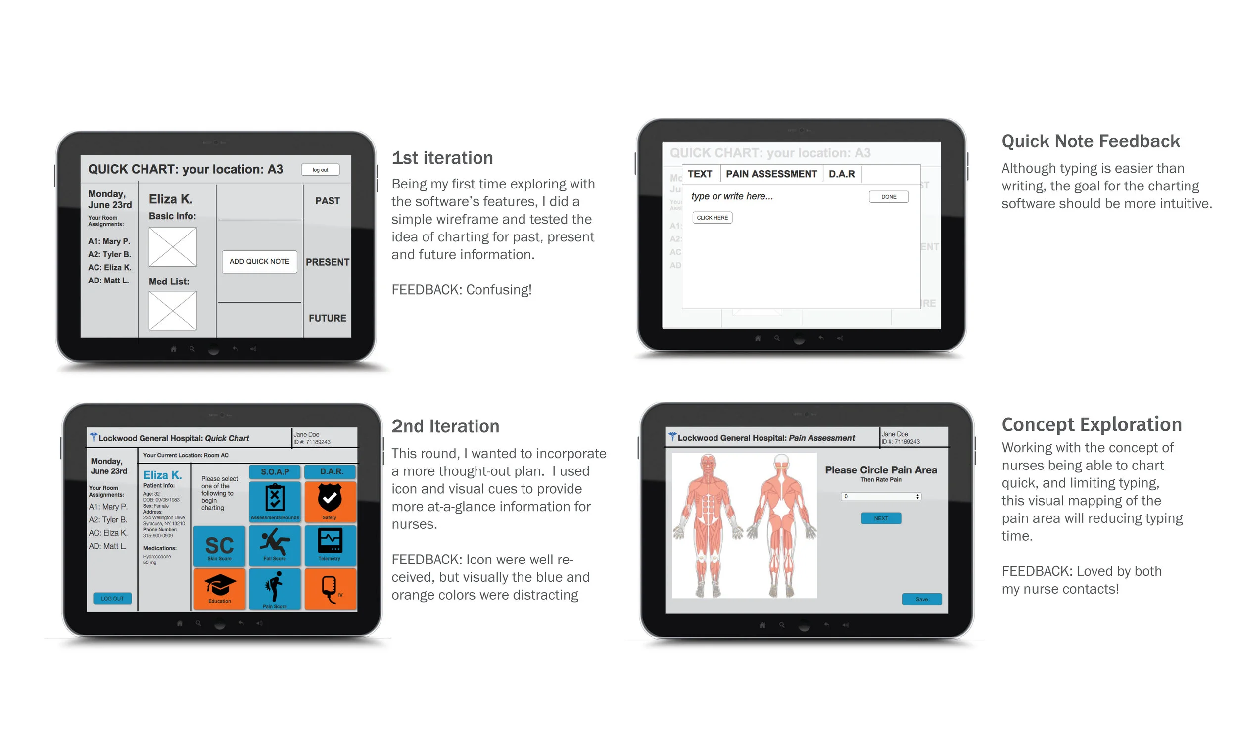 My final design uses data visualization to aid nurses in knowing the status of their charting while also being able to chart in a more intuitive a less text-heavy manner